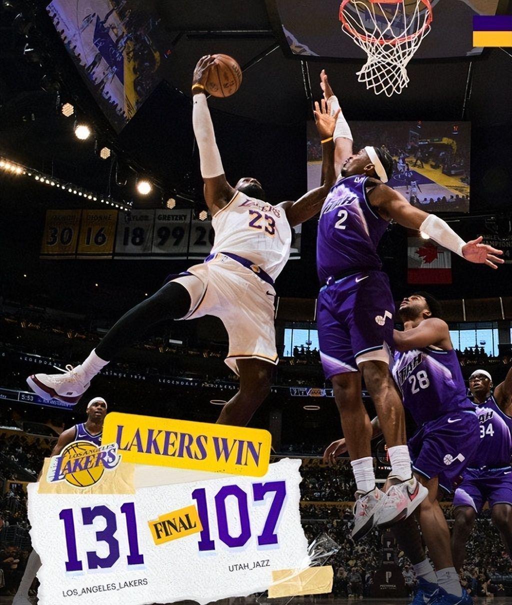 在他的引领下,湖人上半场便以62比45大比分领先,比赛悬念提前终结;仅出战16分钟,便交出18分、6助攻、4篮板、3抢断的全面答卷。41岁高龄仍保有如此顶级输出效率,实属现象级存在!