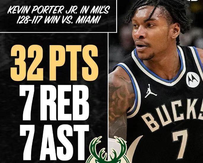 北京时间2月25日,NBA常规赛热火客场对阵雄鹿,雄鹿在波特32+7+7出色表现引领下,全队5人得分上双最多领先12分优势,最终雄鹿128-117战胜热火,雄鹿近9战7胜反弹,热火结束3连胜。