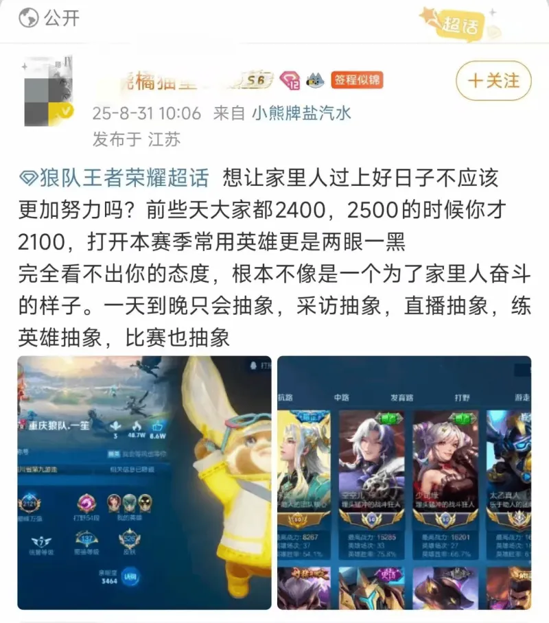 接到粉丝反馈,我们关注到微博平台上队友的后援会个别成员在公开微博及评论区发布针对一笙的不当言论,包括阴阳怪气的暗讽和直接辱骂等行为。这些内容引发了粉丝之间的矛盾,同时对选手的个人声誉造成了损害。