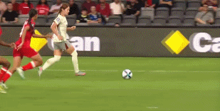 第44分钟,王霜前场得球右脚吊射破门,1比0!